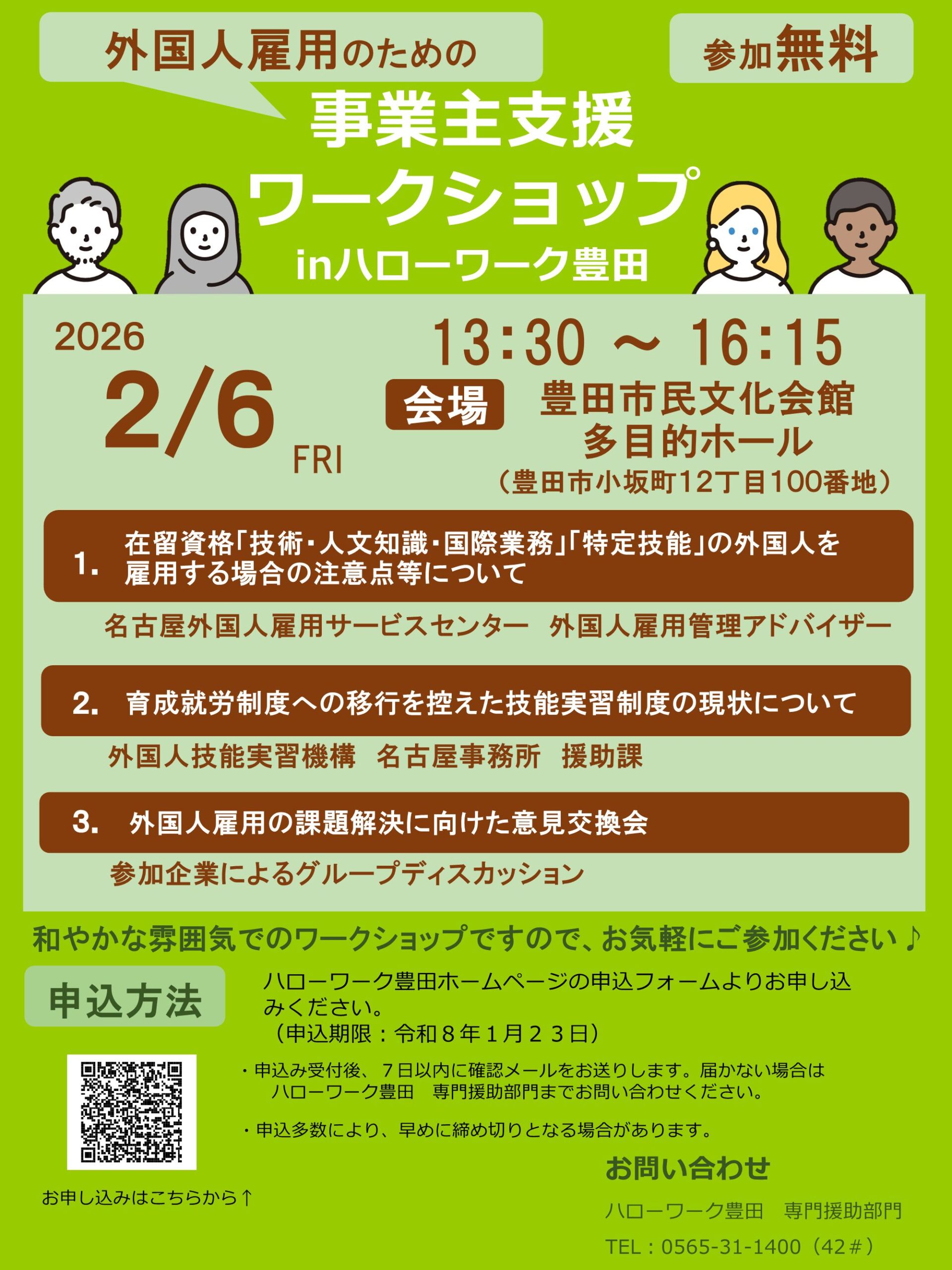 「外国人雇用のための事業主支援ワークショップ」参加者募集!