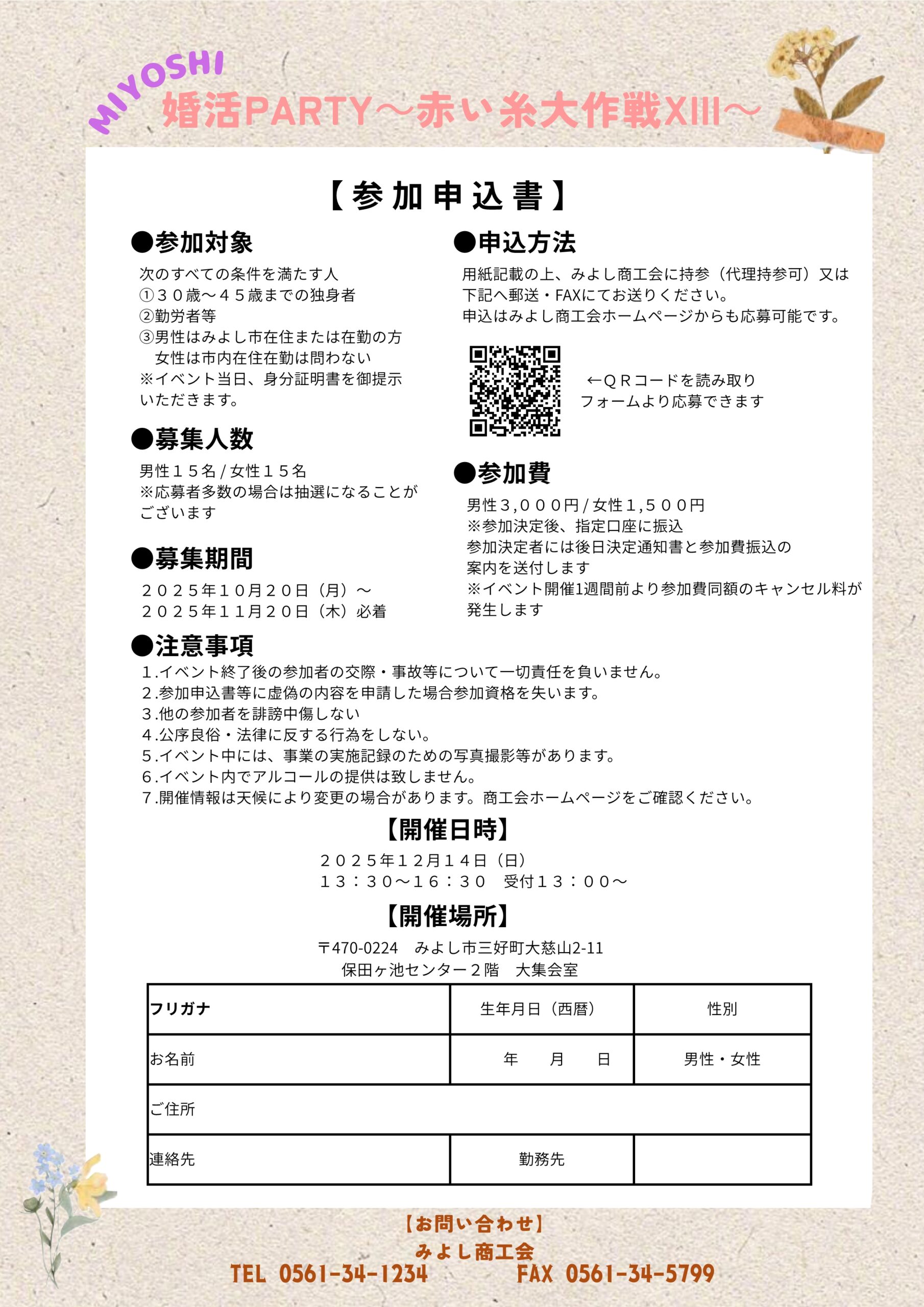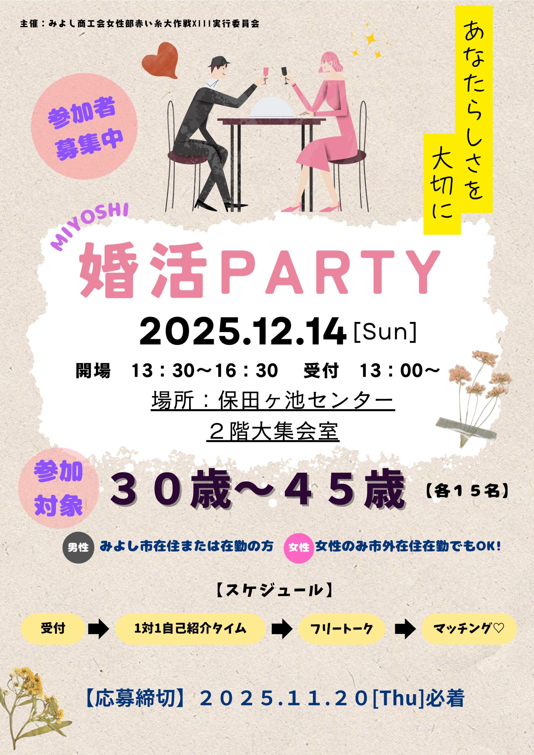 みよし商工会女性部主催 「婚活PARTY 赤い糸大作戦XIII」参加者募集のお知らせ